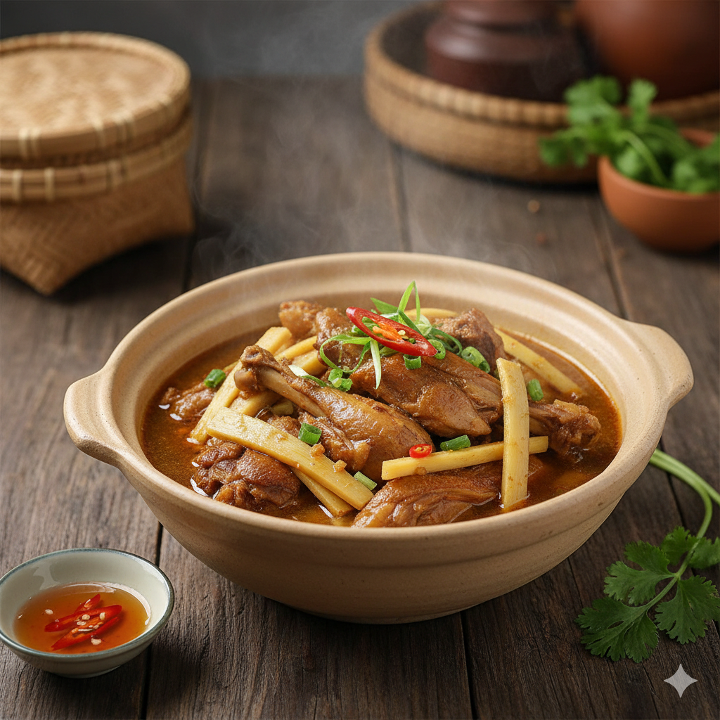 Thịt vịt nấu măng là một trong những món ăn truyền thống quen thuộc của người Việt, đặc biệt xuất hiện nhiều trong những bữa cơm gia đình, tiệc cưới hỏi hay ngày lễ Tết. Sự kết hợp giữa thịt vịt béo ngậy, mềm thơm cùng với măng chua giòn giòn, thanh thanh tạo nên hương