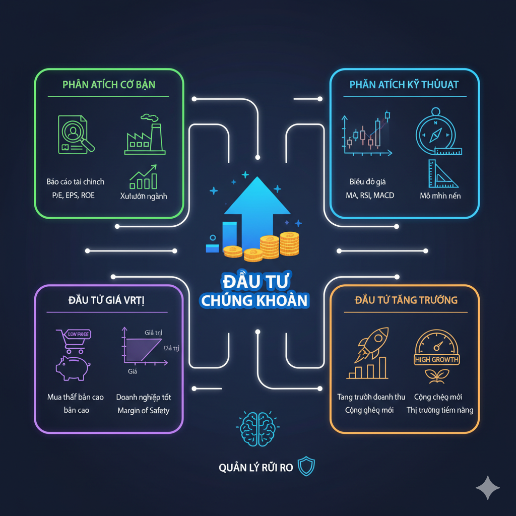 Đầu tư chứng khoán là một trong những kênh sinh lời hấp dẫn nhất hiện nay. Tuy nhiên, để thành công và hạn chế rủi ro, nhà đầu tư cần nắm vững các phương pháp đầu tư chứng khoán phù hợp với mục tiêu và khẩu vị rủi ro của mình. Bài viết này sẽ giúp bạn hiểu rõ những phương